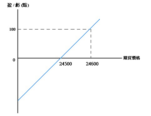 投資者可於24500點買入一張恆生指數期貨合約,當恆生指數期貨上升至24600點,投資者便可賣出平倉,而獲取100點利潤。